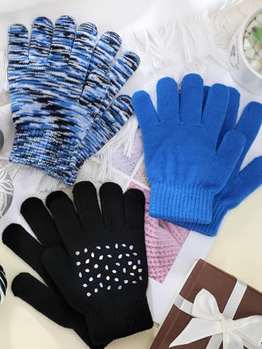 3 Pairs Kids Knitted Gloves Magic Winter Stretchy Warm Gloves for Kids Full Finger Mittens for Children Boys Girls 5-12 Year(Stylish Style) 3