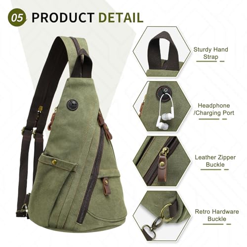 More information about Vintage Canvas Sling Bag with Genuine Leather Zipper, 3 in 1 Crossbody, Backpack, and Chest Bag, for Travel, Hiking, 16x10x6 Inches, Green