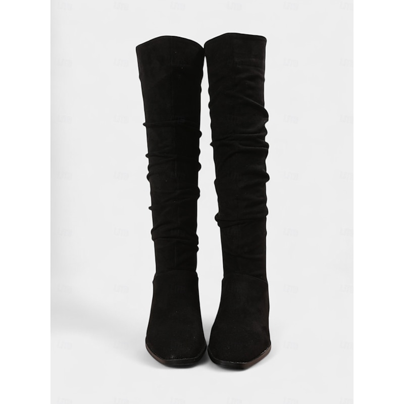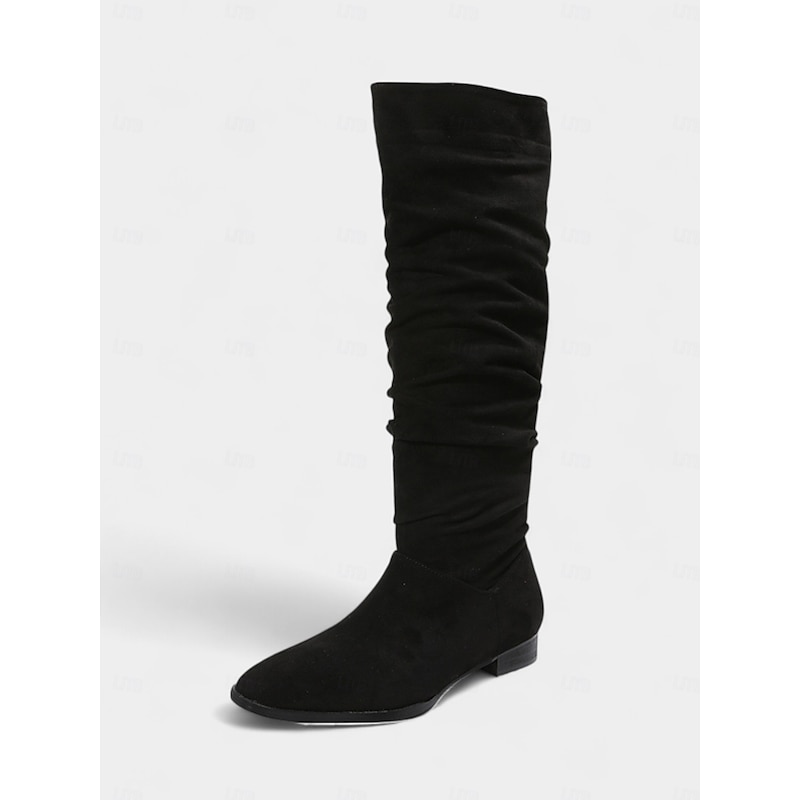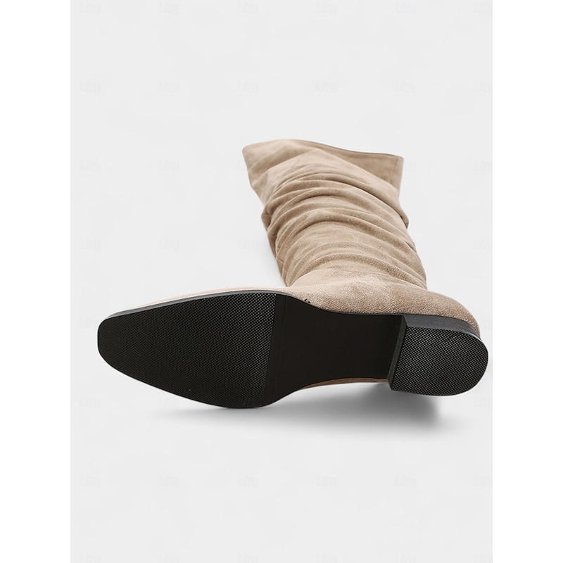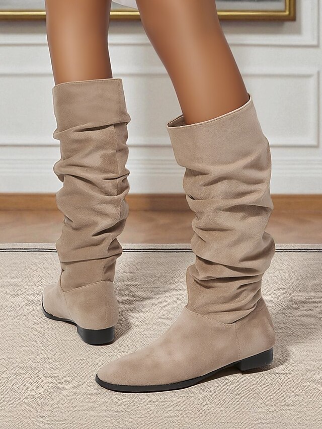 More information about Women's Slouchy Knee High Flat Boots - Taupe Faux Suede Retro Style Fall Fashion Boots for Casual Daily Wear and Costumes