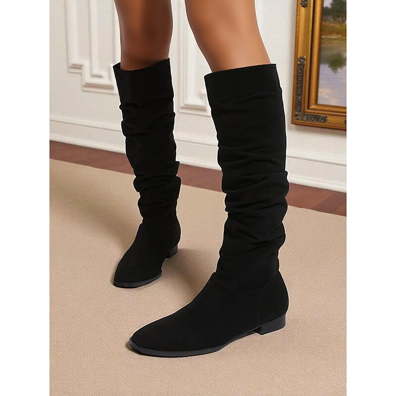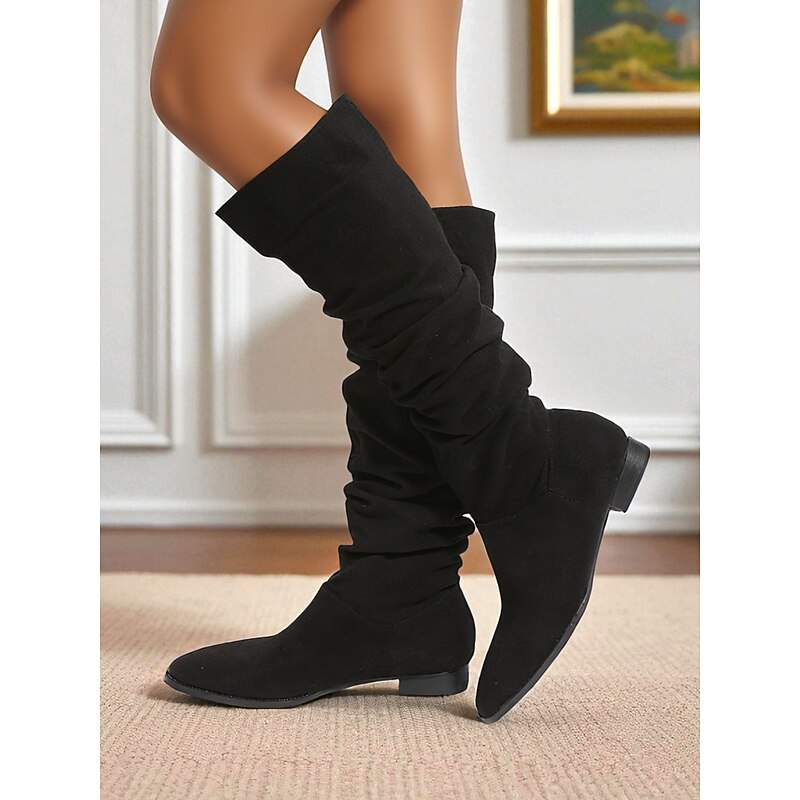 HOT ! Women's Slouchy Knee High Flat Boots - Taupe Faux Suede Retro Style Fall Fashion Boots for Casual Daily Wear and Costumes
