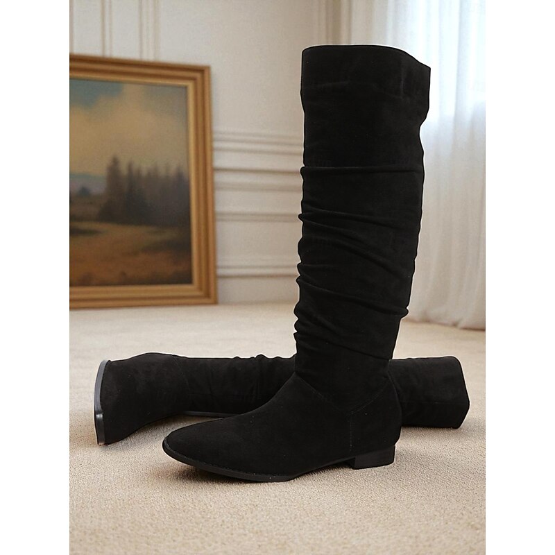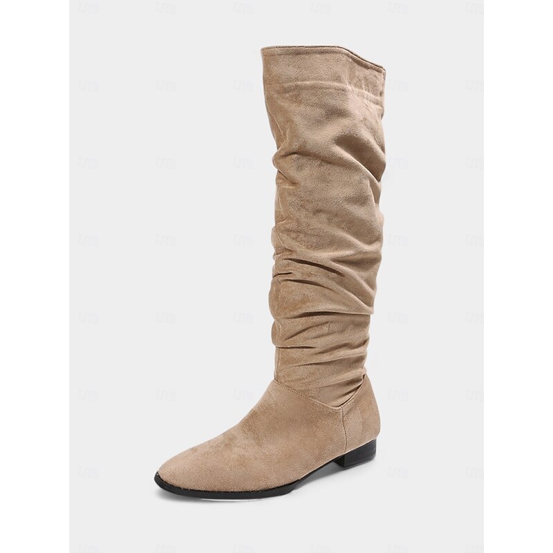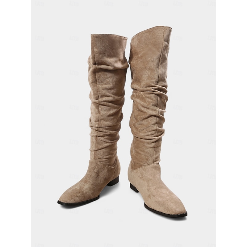 Women's Slouchy Knee High Flat Boots - Taupe Faux Suede Retro Style Fall Fashion Boots for Casual Daily Wear and Costumes 1
