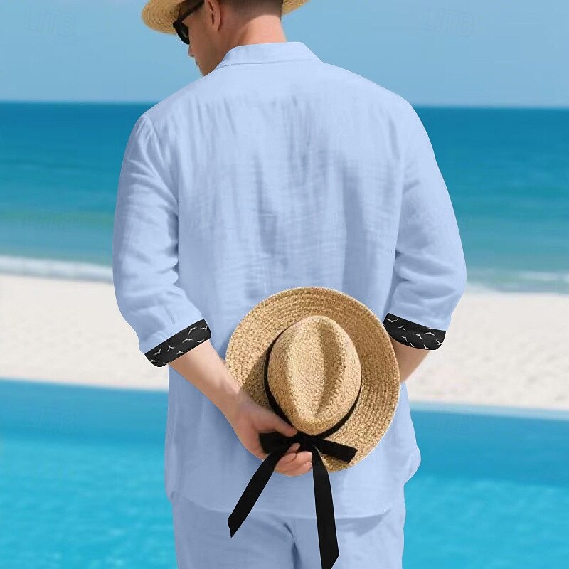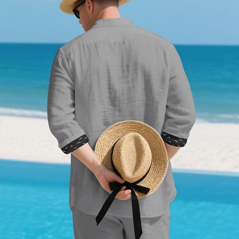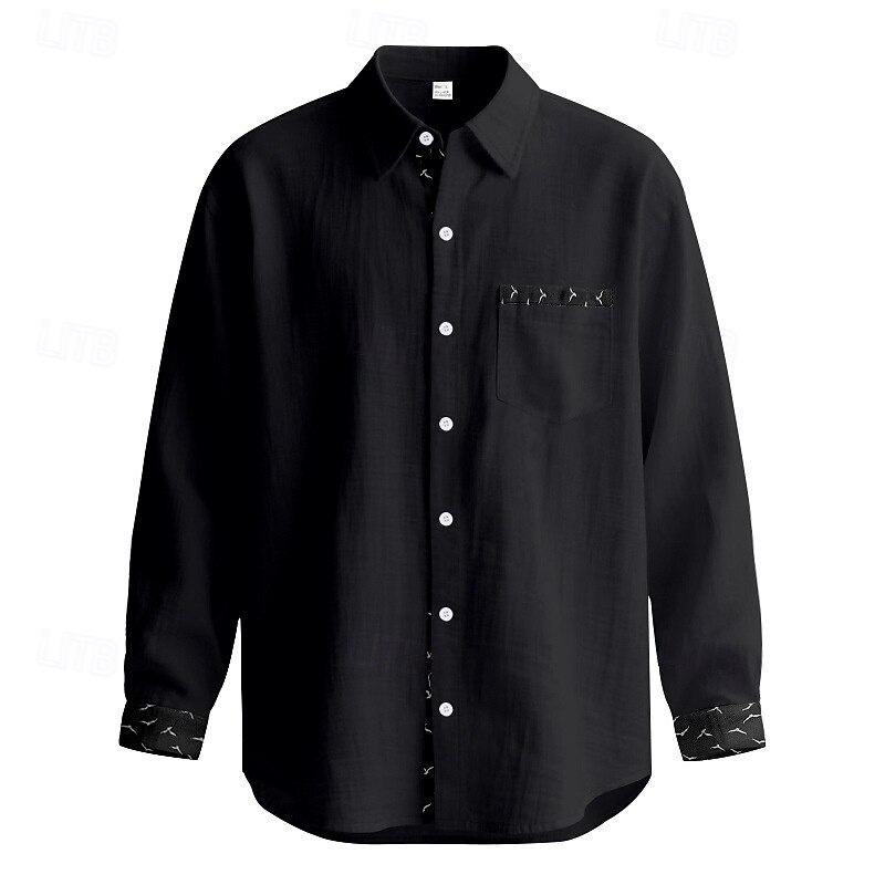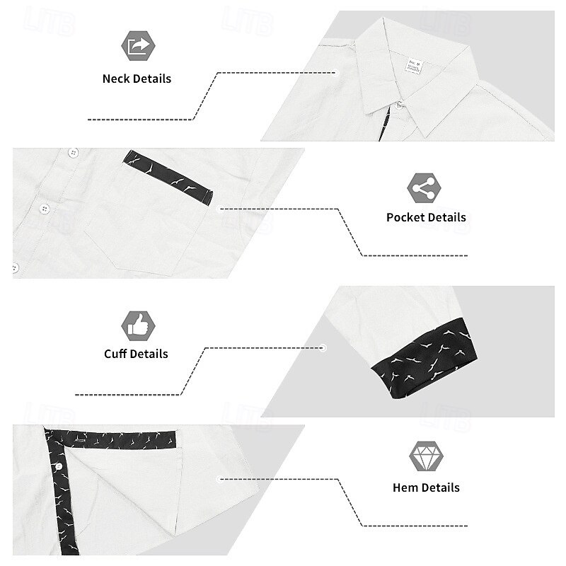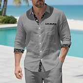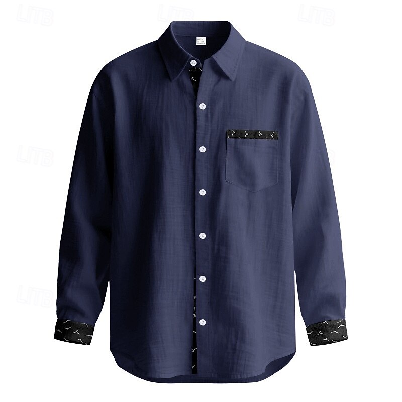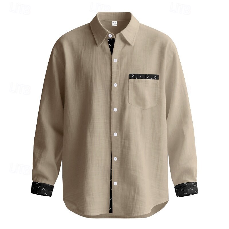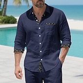 More information about Men's Shirt Linen Shirt Casual Shirt Button Up Shirt Cotton Shirt Color Block Vacation Hawaiian Black White Navy Blue Khaki Long Sleeve Lapel Spring Fall Clothing Apparel Patchwork