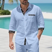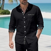 Men's Shirt Linen Shirt Casual Shirt Button Up Shirt Cotton Shirt Color Block Vacation Hawaiian Black White Navy Blue Khaki Long Sleeve Lapel Spring Fall Clothing Apparel Patchwork 36