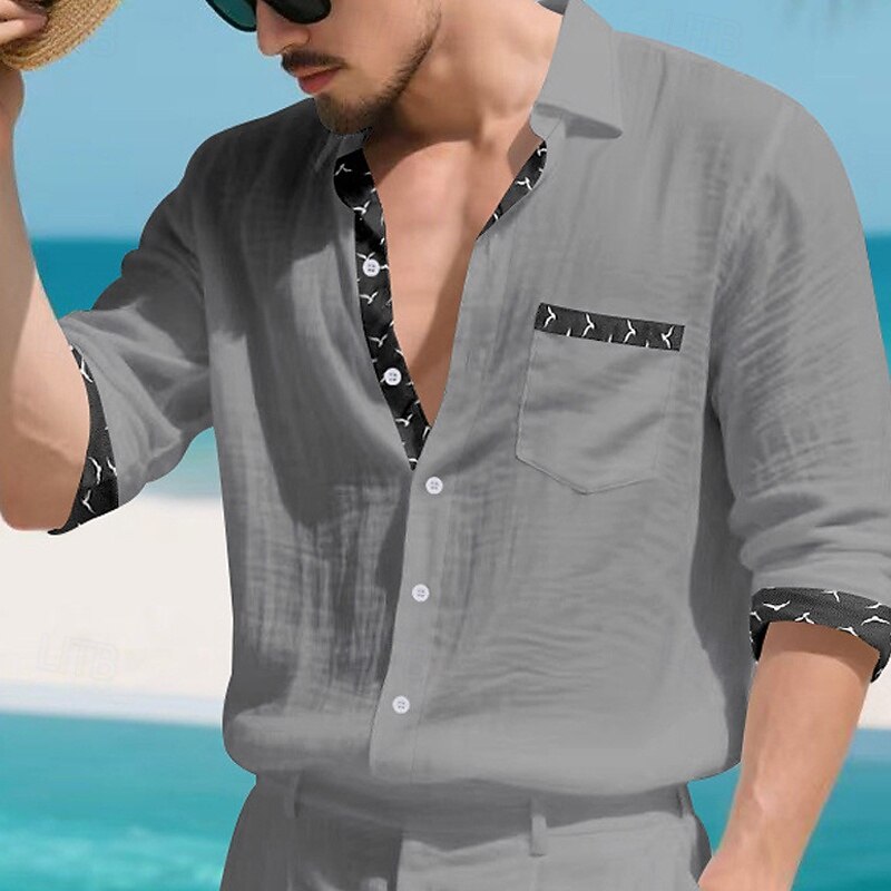Highlights - Made with high-quality linen fabric for a comfortable fit - Features a stylish color block and patchwork design - Long sleeves and lapel neckline add a touch of sophistication - Perfect for a casual look during spring or fall - Ideal for men's vacation fashion - Comes in a trendy linen shirt style with a convenient pocket detail.