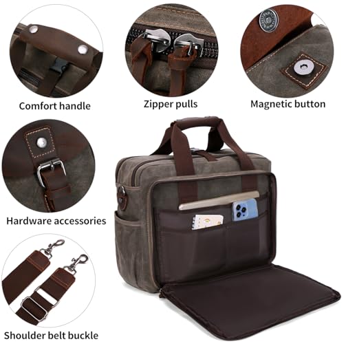 Laptop Bag Briefcase 17.3 Inch Messenger Bag for Men Waxed Canvas Office Carrying Shoulder Bag for Work Business 5