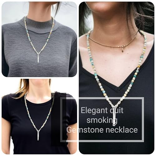 • Unique & Durable Design: Made from natural stone and premium stainless steel, this necklace is both stylish and functional. Safe for your skin and resistant to tarnish, its modern design complements any outfit while providing a practical tool for easing anxiety and quitting smoking. The sturdy build ensures long-lasting use, and the 33-inch unique chain adds versatility, allowing you to wear it as a chic accessory for any occasion.
