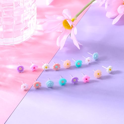 8 Pairs Plastic Earrings Flowers Studs Plastic Earrings for Sensitive Ears Flower Plastic Post Earrings for Women 7