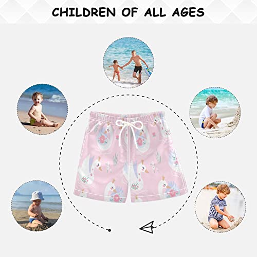 Boccsty White Swans Floral Boys Swim Trunks Summer Toddler Beach Board Shorts Kids Swimsuit Swimwear L Multicoloured 3