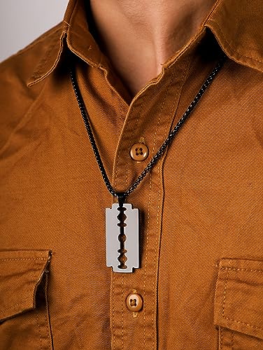 HAQUIL Razor Blade Necklace, Black Plated Stainless Steel Razor Blade Pendant, Box Chain, Gothic Punk Rock Hip Hop Jewelry Gift for Men 5