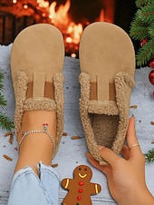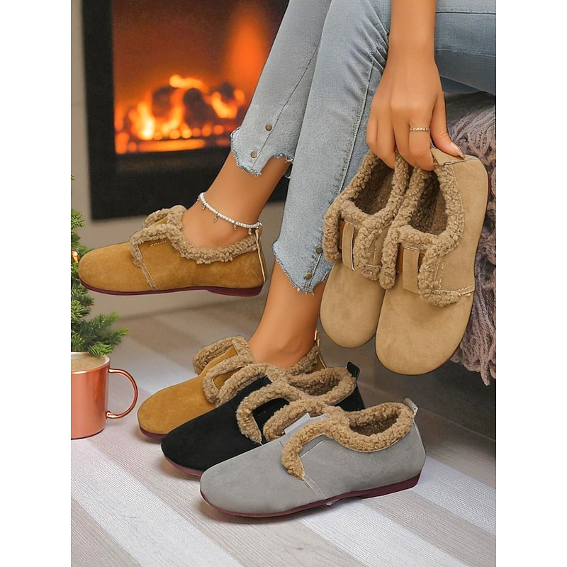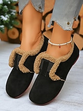 popular ! Women's Wide Width Fleece Lined Slip-On Shoes, Cozy cozy Shoes with Elastic Band, Winter Indoor Footwear for Fall Winter Casual Wear