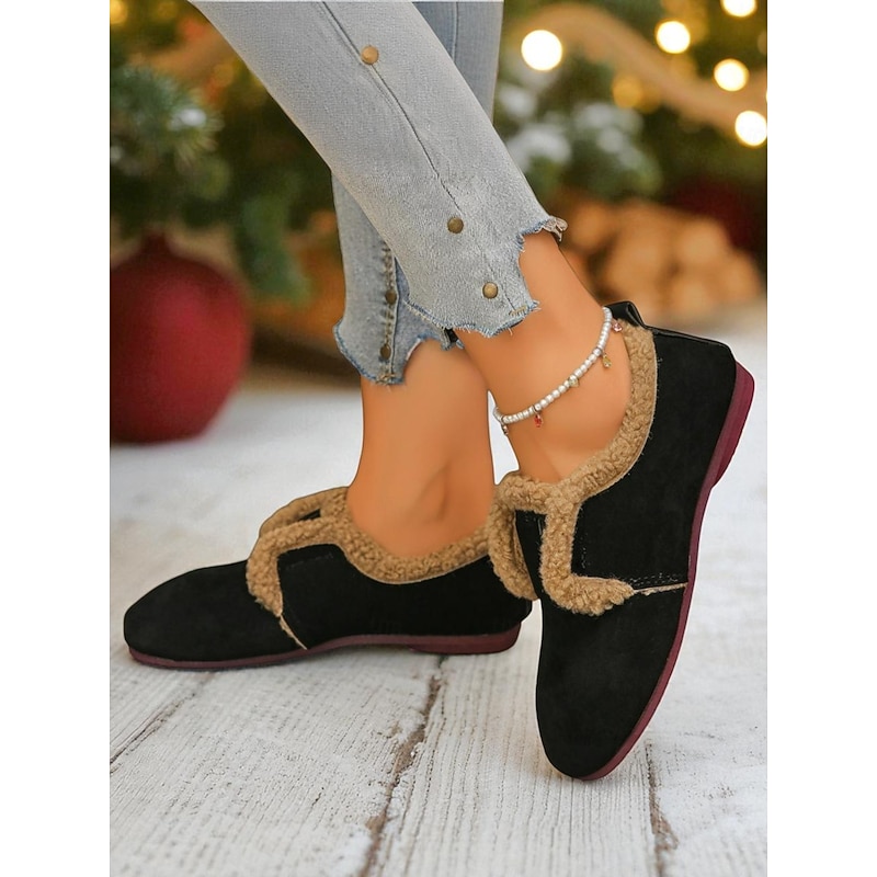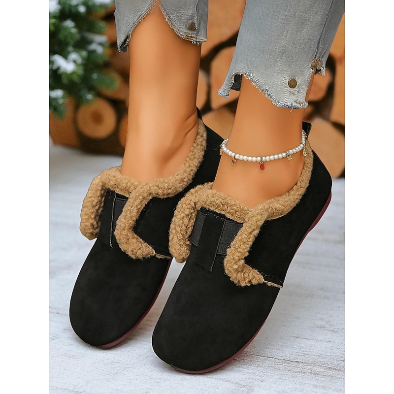 Women's Wide Width Fleece Lined Slip-On Shoes, Cozy Warm Shoes with Elastic Band, Winter Indoor Footwear for Fall Winter Casual Wear 1