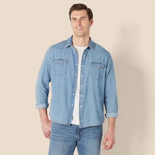 HOT ! Amazon Essentials Men's Slim-Fit Long-Sleeve Denim Shirt with Snap Buttons