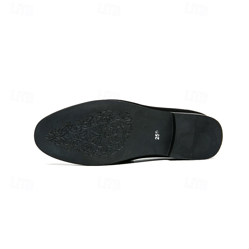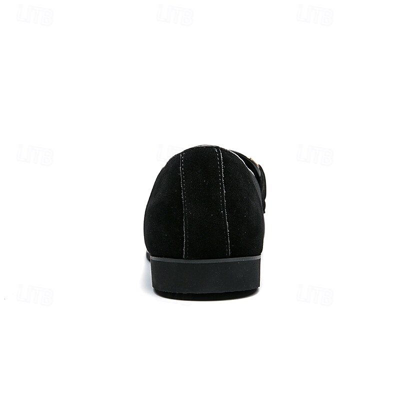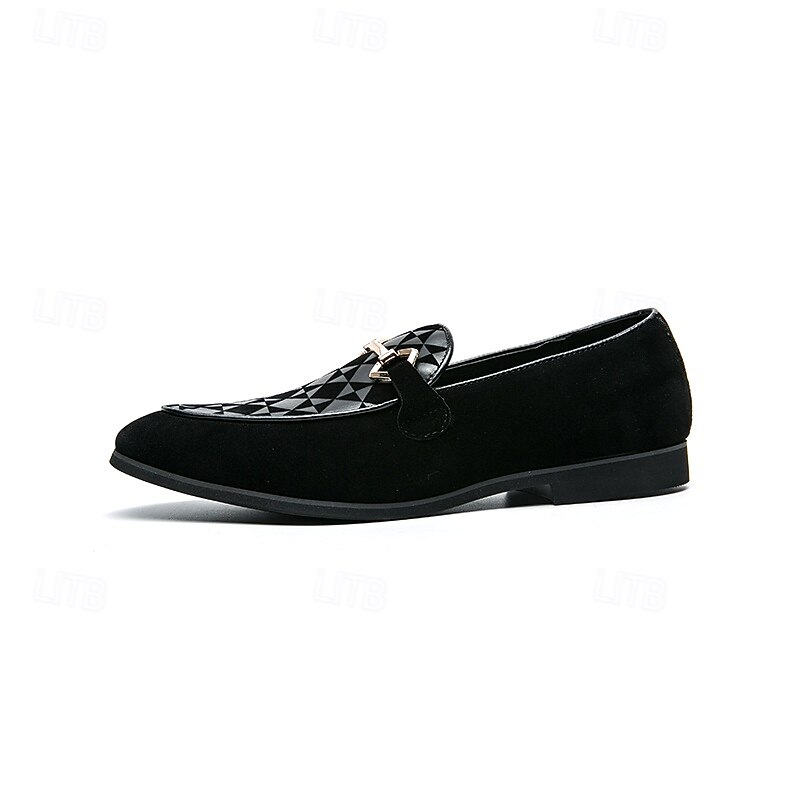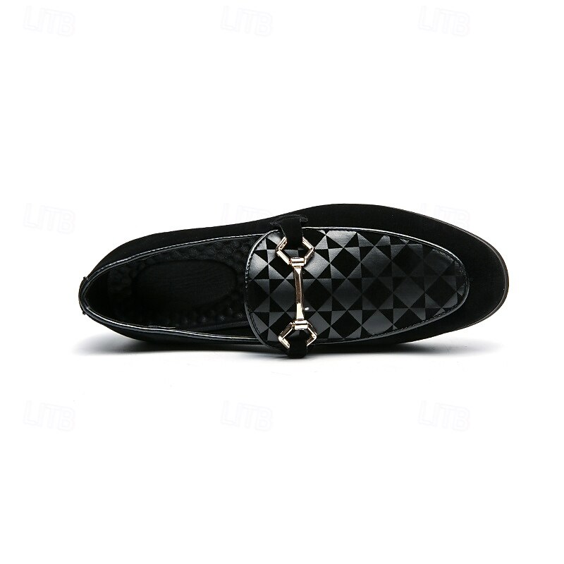 Men's Black Faux Suede Loafers with Geometric Pattern and Metal Buckle – Stylish Slip-On Dress Shoes for Formal Events and Parties 24