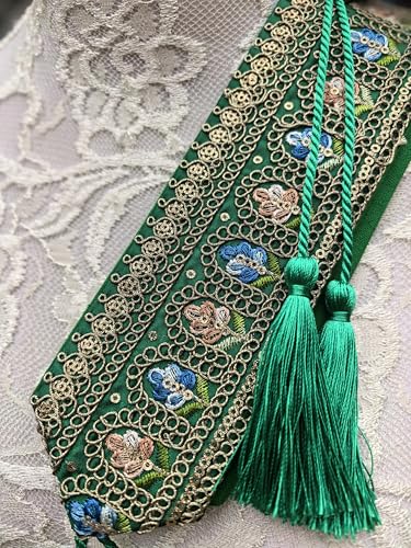 FANFAN Green Embroidered Belt Mexican Embroidered Belt for Women Vitage Floral Belt Boho Tassel belt Ethnic Waist Belt E6 5