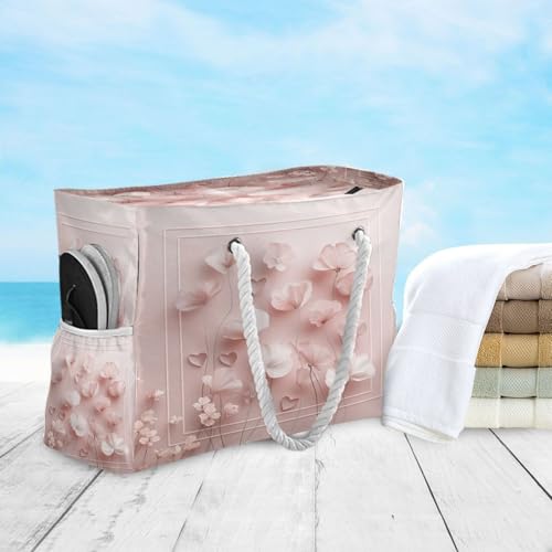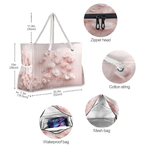 HOT ! Ight Pink Tones (1) Beach Bag & Travel Tote Bag Large Sandproof with Zipper Closure, Wet Pouch for Swim Gym Travel, Lightweight Foldable Outdoor Bag