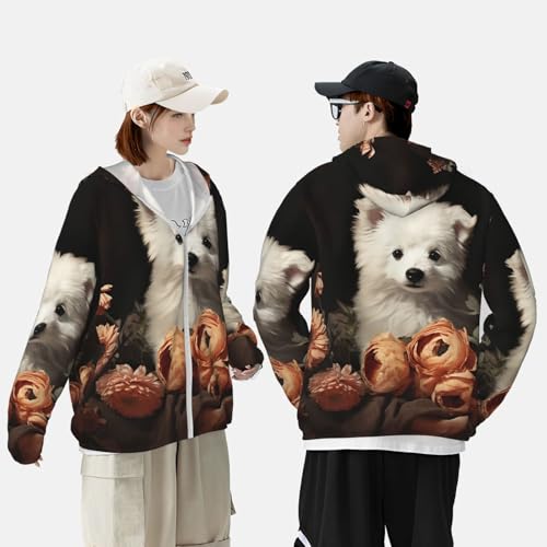 HOT ! Men's Sun Protection Shirts Dog Sits Next to a Flower Long Sleeve Sun Shirt for Fishing Running Hiking Swim