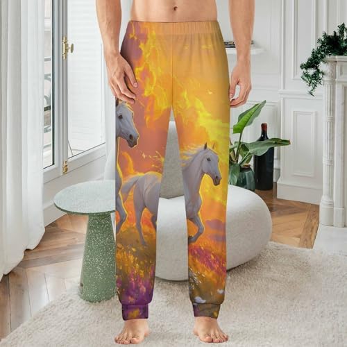 HOT ! Horses Running Flower Field Sunrise Men's Pajama Pants Lounge Pant Sleepwear PJ Bottoms