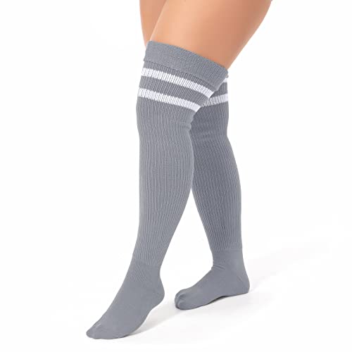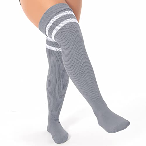 Littleforbig Plus Size Thigh High Long Striped Cable Knitted Stockings