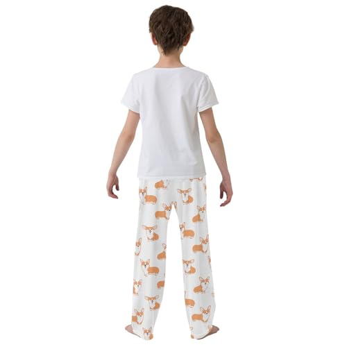 HOT ! Boys' Pants Cute Cartoon Corgi Dog Animal Long Bottoms Jogger Pants Elastic Waist Trousers with Pockets S-XL