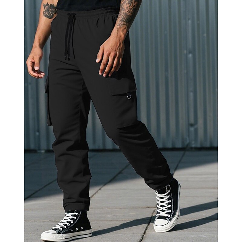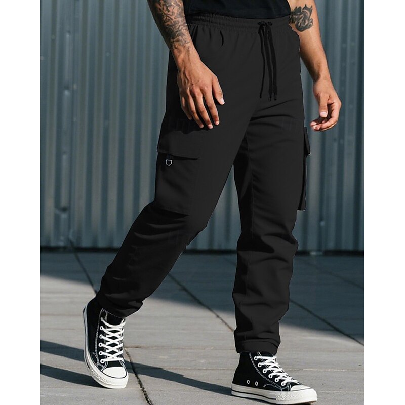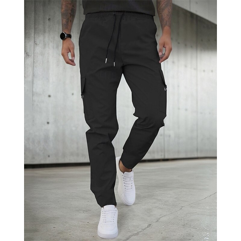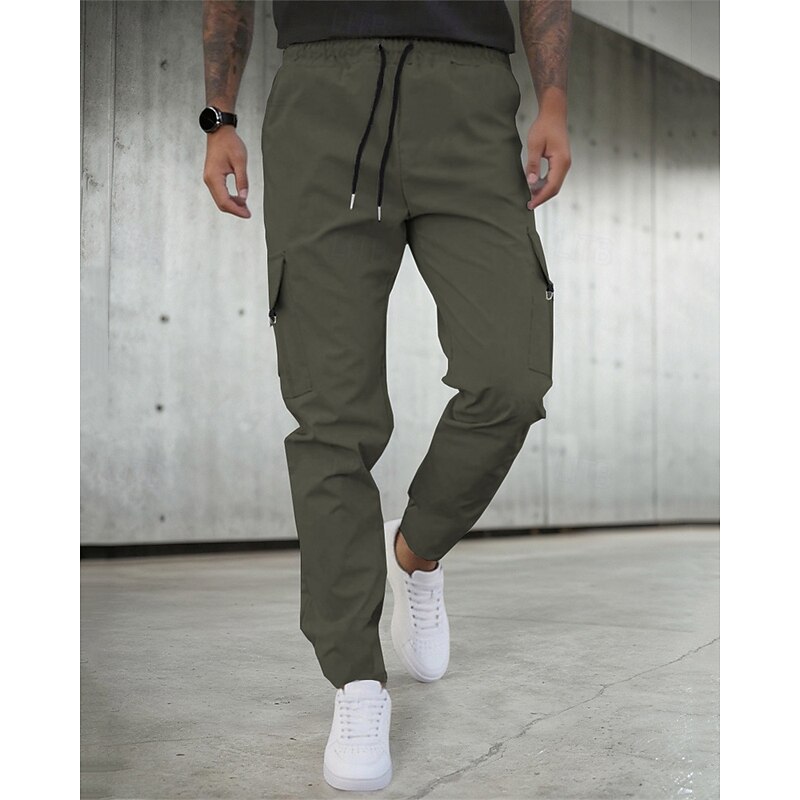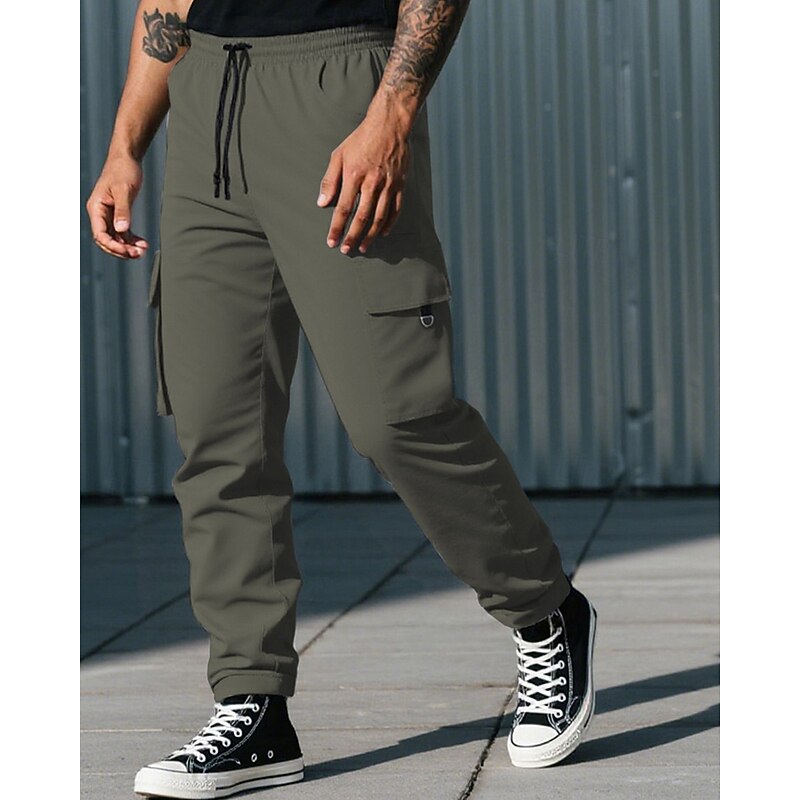 HOT ! Men's Cargo Pants Trousers Drawstring Elastic Waist Multi Pocket Plain Camouflage Wearable Outdoor Daily Camping & Hiking Fashion Classic Black Army Green