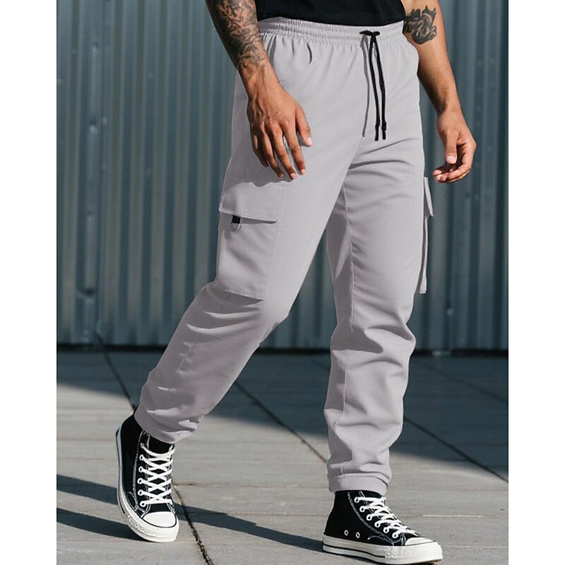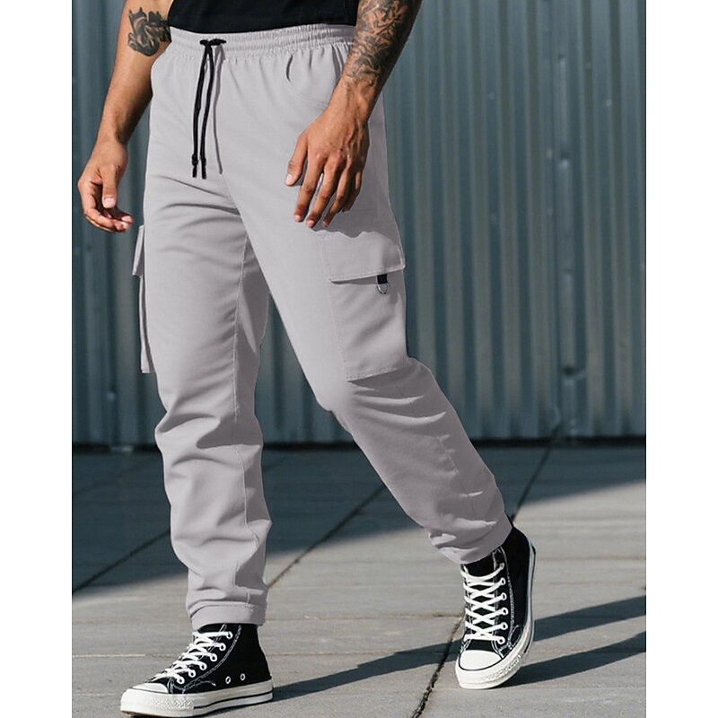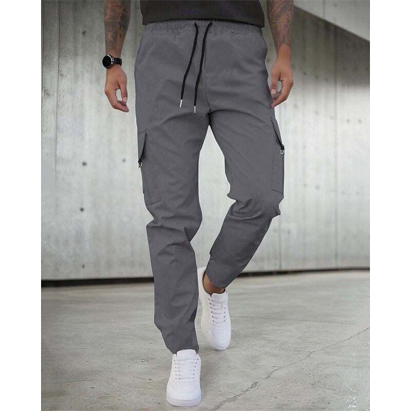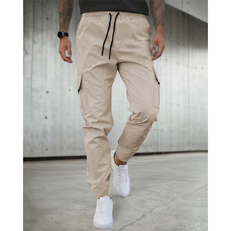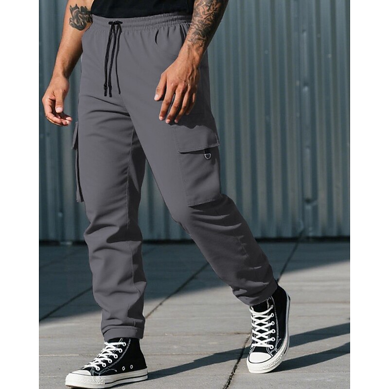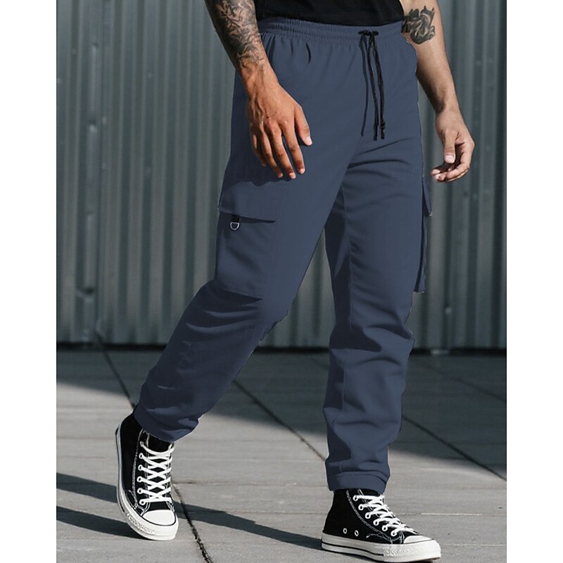 HOT ! Men's Cargo Pants Trousers Drawstring Elastic Waist Multi Pocket Plain Camouflage Wearable Outdoor Daily Camping & Hiking Fashion Classic Black Army Green