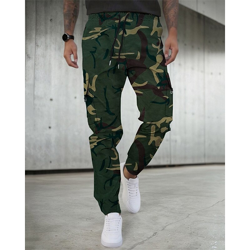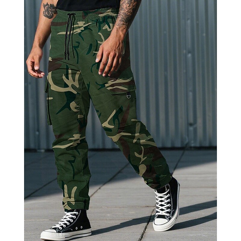 More information about Men's Cargo Pants Trousers Drawstring Elastic Waist Multi Pocket Plain Camouflage Wearable Outdoor Daily Camping & Hiking Fashion Classic Black Army Green