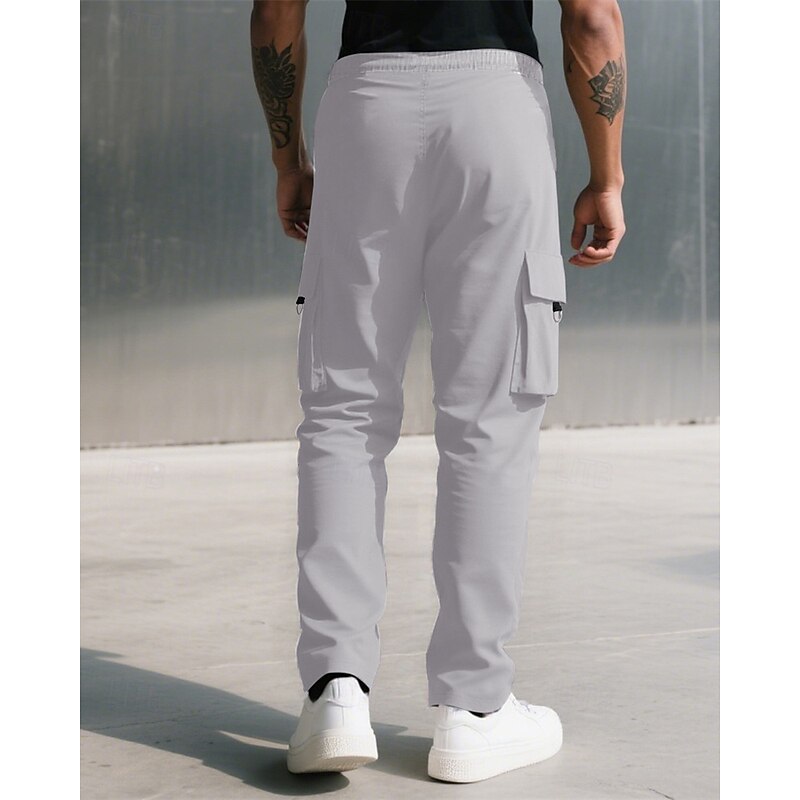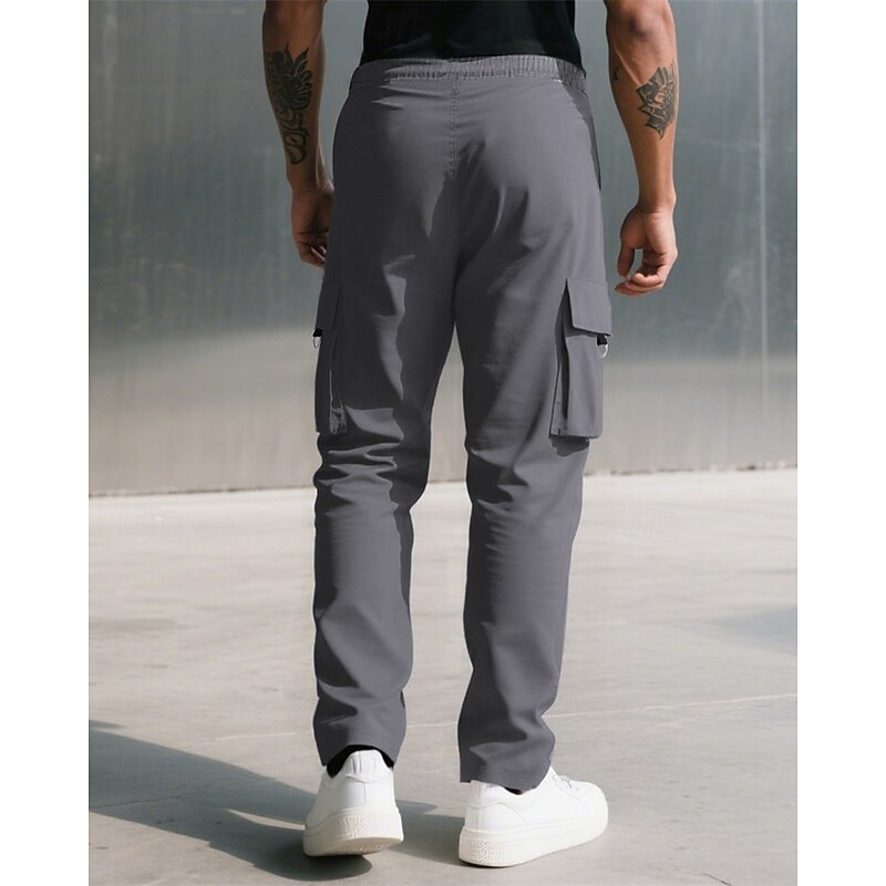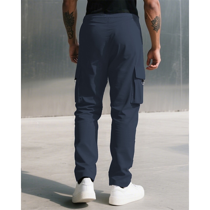 Men's Cargo Pants Trousers Drawstring Elastic Waist Multi Pocket Plain Camouflage Wearable Outdoor Daily Camping & Hiking Fashion Classic Black Army Green 23