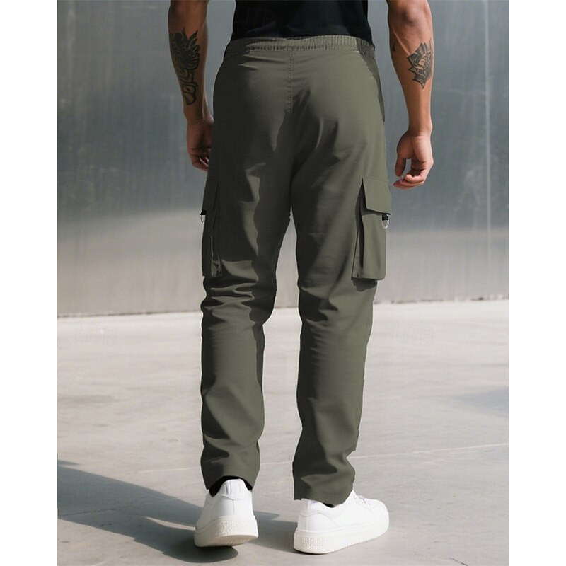 Men's Cargo Pants Trousers Drawstring Elastic Waist Multi Pocket Plain Camouflage Wearable Outdoor Daily Camping & Hiking Fashion Classic Black Army Green 11