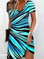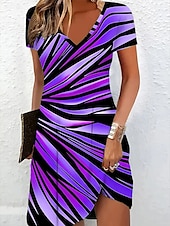 More information about Women's Mini Dress Bodycon T Shirt Dress Tee Dress Shift Dress Summer Dress Vacation Casual Regular Fit Graphic Stripe Abstract Short Sleeve V Neck Purple Light Blue Summer Spring Fall
