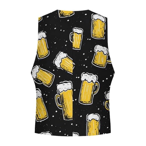 Beer Men's Suit Vests Business Formal Dress Vest V-Neck Waistcoat for Wedding Casual 1