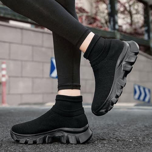 Mens Trainers High Top Sneaker, Knit Platform Breathable Lightweight Walking Shoes, Womens Sport Slip On Jogging Sneakers for Indoor and Outdoor 5
