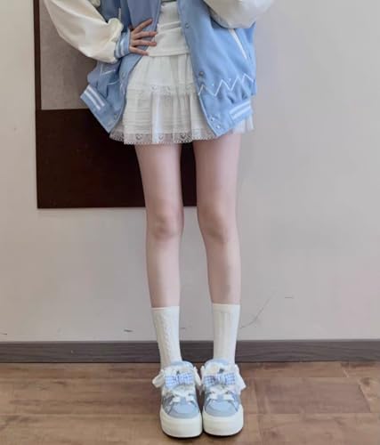 Y2K Cute Chunky Sole Kitten Lace Bow Aesthetic Shoes Platform Low Top Walking Sneakers for Women, Sweet and Fashionable Comfort 7