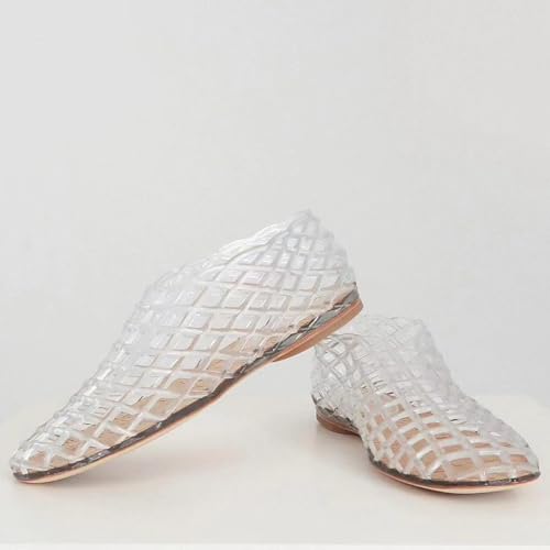 Jelly Mesh Ballet Flats for Women PVC Hollowed Jelly Slip On Ballerina Shoes 7