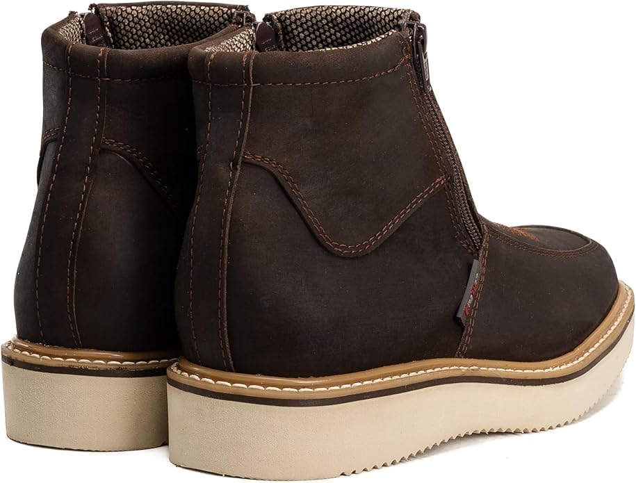 • ✅Durable and Comfortable Design: a perfect blend of durability and comfort for all-around work. Featuring a soft wedge sole and crafted from full-grain leather, these brown boots provide oil and water resistance. Ideal for those who require sturdy, long-lasting footwear.