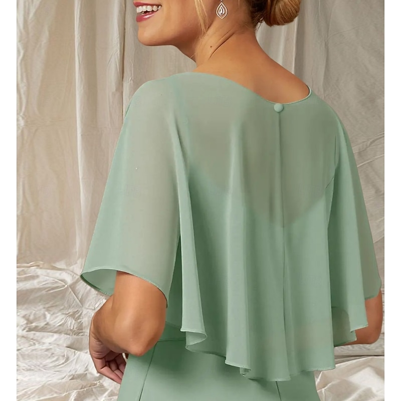 More information about A-Line Mother of the Bride Dress Wedding Guest Elegant Crew Neck Floor Length Chiffon Half Sleeve with Cascading Ruffles