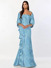 More information about Cape Dress Jacquard Peplum Dress Marble Mermaid / Trumpet Evening Gown Elegant Dress Formal Semi Formal Black Tie Wedding Floor Length Sleeveless Strapless with Ruffles