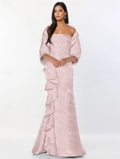 $154.99 - Cape Dress Jacquard Peplum Dress Marble Mermaid / Trumpet Evening Gown Elegant Dress Formal Semi Formal Black Tie Wedding Floor Length Sleeveless Strapless with Ruffles 2025. Shop for cheap Sheath Evening Dresses online? Buy at lightinthebox.com on sale today!