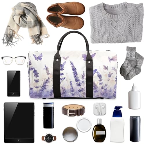 TropicalLife Purple Lavender Travel Duffle Bag for Women Men Purple Butterfly Sports Gym Bag Waterproof Carry on Overnight Weekender Bag 1