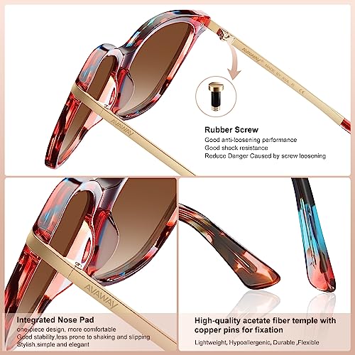 • Square Polarized Sunglasses for Women: AVAWAY trendy sunglasses add instant chic to any outfit. Lightweight metal arms deliver a balanced, polished look from casual weekends to office elegance. These polarized sunglasses are great complements to oval, heart-shaped, or round faces.
