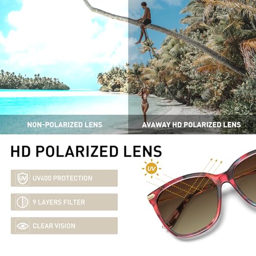 • Premium HD TAC UV400 Lens: Our womens polarized sunglasses block 100% of harmful UV rays while the high-definition TAC lenses eliminate 99% of glare for high-contrast vision. Lightweight, shatterproof and scratch-proof, they deliver long-lasting optical clarity for driving, fishing or daily wear.