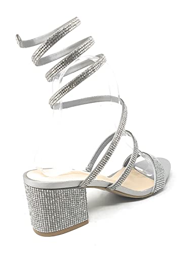 Wild Diva Women's Larina-192 Rhinestone Spiral Ankle Strap Low Block Heeled Sandals Heels 5