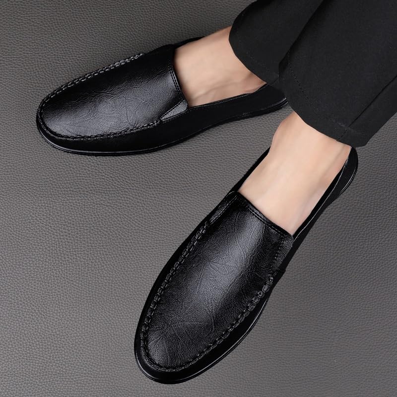 Men's Loafers Shoes Round Toe Vegan Leather Breathable Loafer Shoes Resistant Lightweight Anti-Slip Fashion Prom Slip On 6