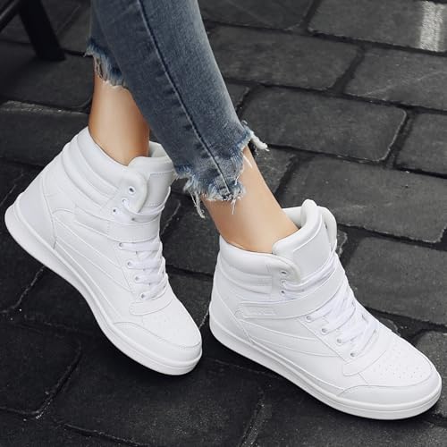 UBFEN Womens High Top Sneakers with Hidden Wedge Heel Ankle Support 2 Inch Height Increase 80s Retro Casual Boots 5