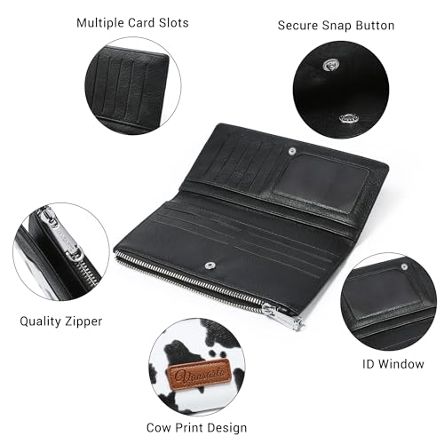 Cow Print Wallets for Women Slim Bifold Credit Card Holder - Card Cases Wallet with Smooth Zipper, Coin Pocket & ID Window - Money Organizer Cash Wallet, Signature Black 5