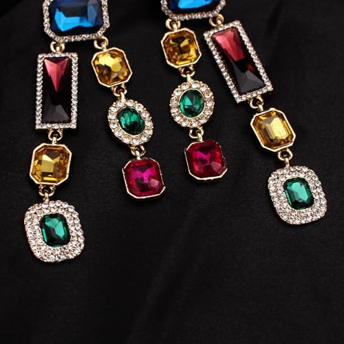 Vintage Rectangle Teardrop Chandelier Earrings, Art Deco Wedding Austrian Crystal Drop Dangle Earrings for Women Party Prom 6