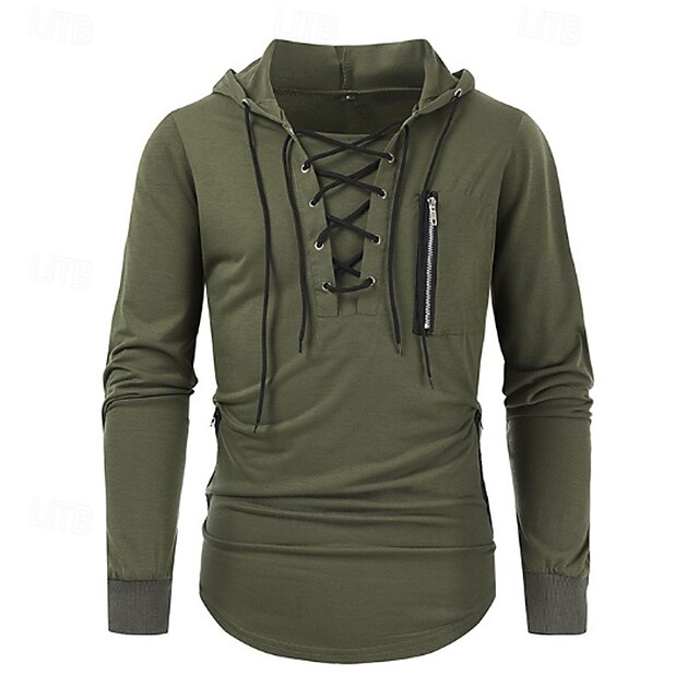 More information about Men's T Shirt Tee Tee Top Long Sleeve Shirt Long Sleeve Hooded Spring Fall Plain Fashion Designer Basic Lace up Zipper Vacation Street Going out Black Blue Brown Top Tee for Men