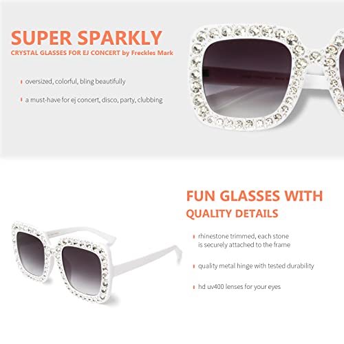 • Super Cool Rave Sunglasses: Freckles Mark sparkly sunglasses a perfect type of rave accessories, great for music festivals, concerts, parties, Halloween costume, 4th of July celebration, disco etc. They are outstanding in uplifting the outfits