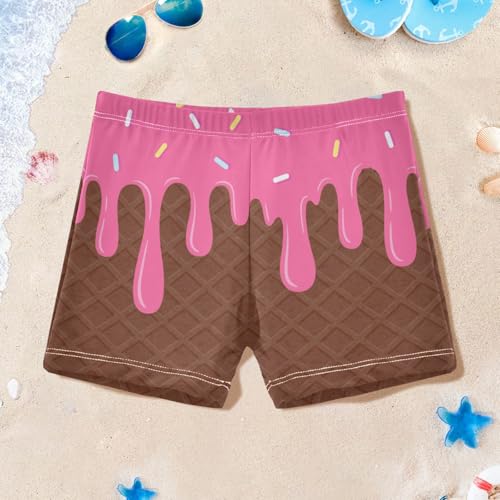 Boys Swim Trunks Quick Dry Bathing Suit Ice Cream Brown Wafer Toddler Swim Shorts Boardshorts Swimwear 3-10 3