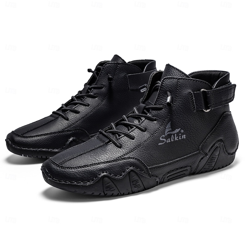 Highlights [Fabric] : Crafted from high-quality microfiber and PU lining, these men's sneakers offer a sleek and modern appearance with a polished finish. The synthetic leather material ensures durability and style, adding a touch of sophistication to your urban wardrobe. [Fit] : Designed as high-top sneakers, they provide ample ankle support with a comfortable, snug fit. The round toe shape complements the overall design, ensuring a stylish and easy fit for everyday wear. [Design Highlights] : These sneakers stand out with their hand-stitched detailing and secure lace-up closure, enhanced by an adjustable buckle strap. The durable rubber outsole offers slip resistance and stability, making them ideal for various terrains. Their versatile design allows for pairing with both casual and semi-formal outfits. [Occasions] : Perfect for casual outings, urban explorations, and athletic activities, these shoes are designed for versatile use. Whether you're navigating city streets or enjoying a weekend getaway, these sneakers blend comfort and style seamlessly. [Size Range] : Available in a variety of sizes, from US6 to US12 (EU38-EU45), these sneakers cater to a wide range of foot sizes, ensuring a perfect fit for every customer.