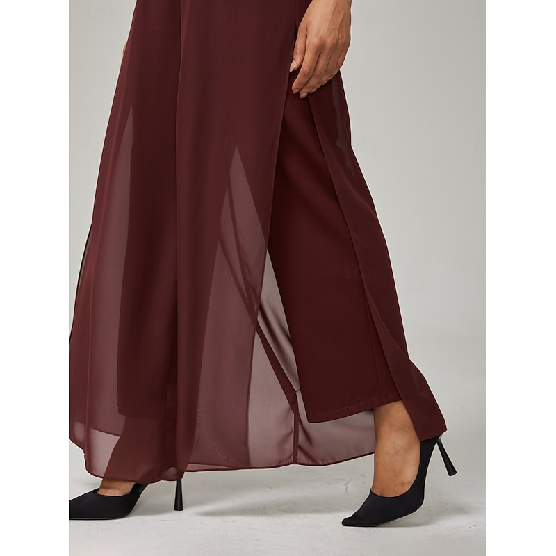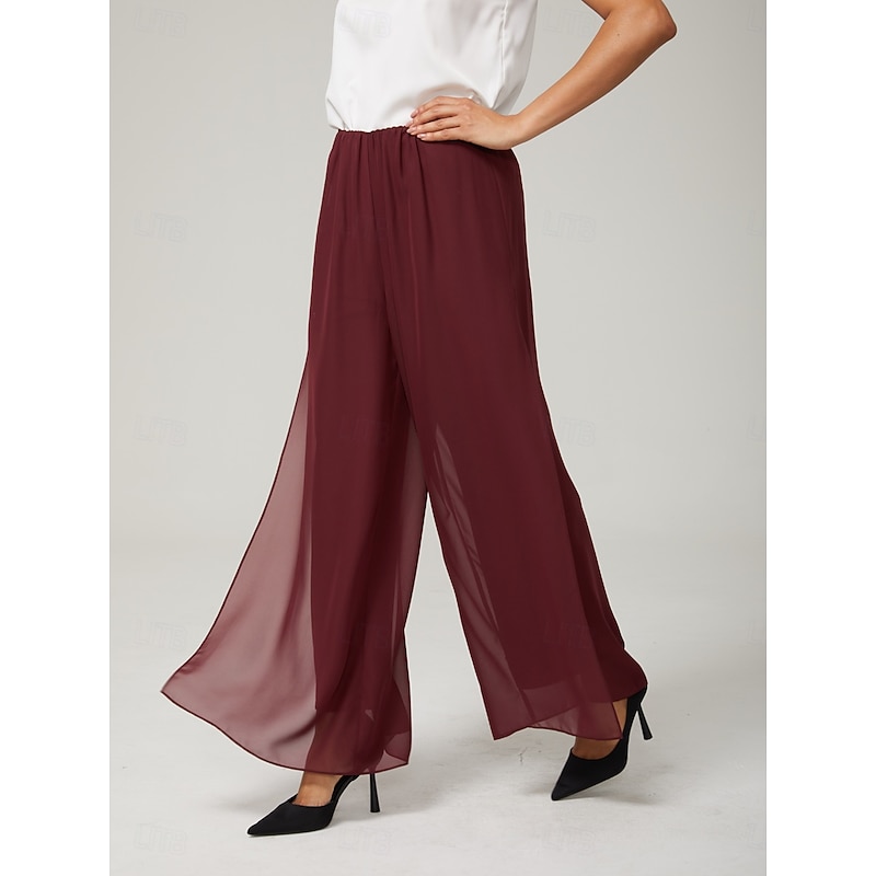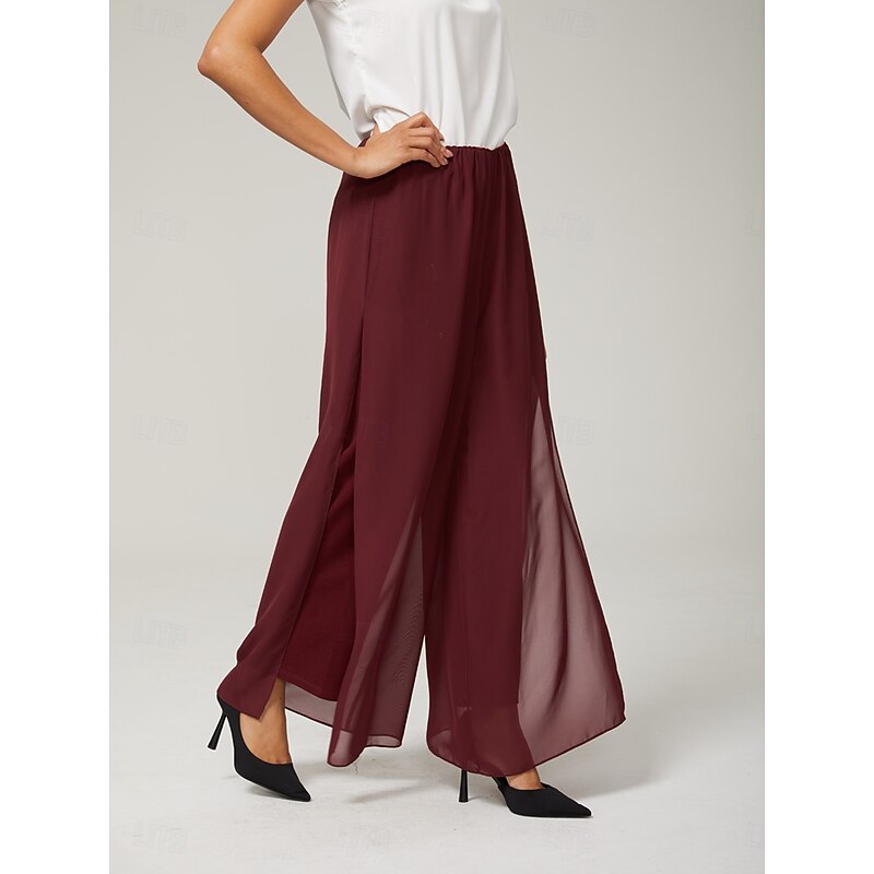 More information about Women's Culottes Wide Leg Straight-Leg Trousers Elegant Stylish Classic Style Full Length Medium Waist Solid Color Elastic Waist Stretchy Wedding Vacation Party Wine Spring, Fall, Winter, Summer